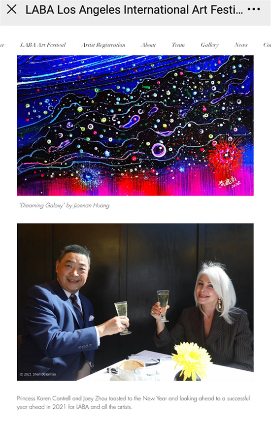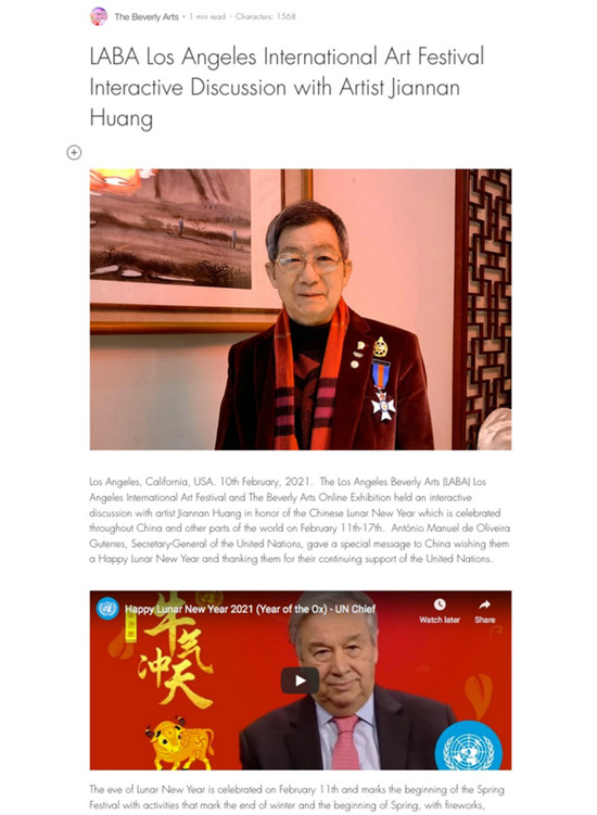 洛杉矶国际艺术节暨比佛利艺术线上展(简称LABA)给黄建南的礼遇,可谓接二连三,“好”得难以令人置信!