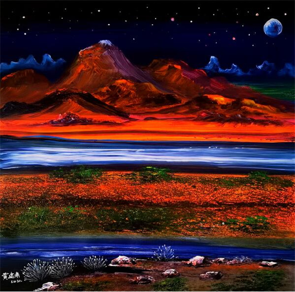 丰富的经历及积累,使黄建南融通中外,把中国传统的国画意境技法与西方的油画光影色彩完美结合,创造出独特的绘画风格,创立了其个人的绘画艺术新体系。
