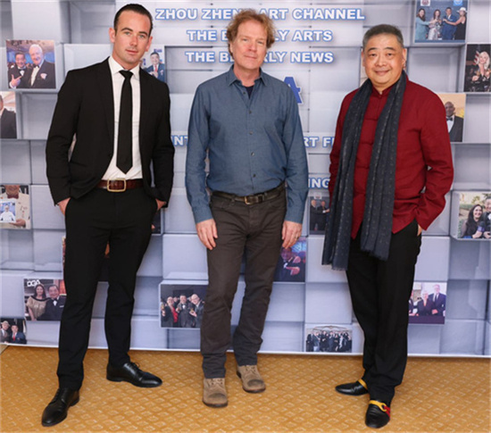 从左到右:主持人Maxbell Gobbell, 雕塑家Joe Davidson , 导演、制片人周正