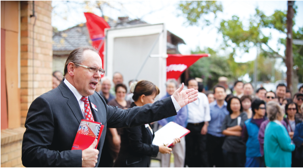 在繁荣的房产市场,拍卖也是同样的道理。在一栋房子前面,站着一群已登记的买家持续地竞拍,不断地高声喊出超过其他人的叫价,这很容易让人联想到,这栋房产是很受欢迎的。在这样的心理状况下,房子的价格也被越推越高。