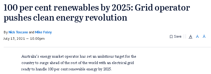 澳洲能源市场运营商(AEMO)为澳洲设定了一个雄心勃勃的目标,即到2025年,澳洲将建成一个能够处理100%可再生能源的电网,遥遥领先于世界其它国家。