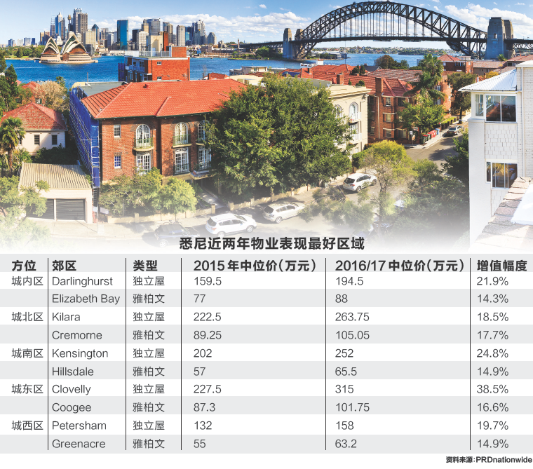 PRDNationwide 2017上半年悉尼房市热点报告集中分析了距离市中心20公里以内的城区,将物业的销售量、租务指数、房价可负担能力、预计升值空间等项目列入考察范围。