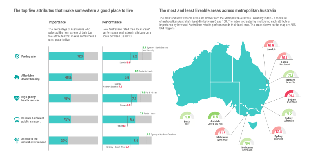 澳洲一直都是移民者心中最宜居的国家之一。那么在澳洲本地人心中,到底哪个地区最适合居住呢?快和我们一起看下去吧!最影响宜居度的五大要素近期,Ipsos发布了《Lif