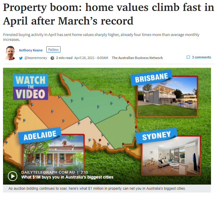 数据显示,全澳各地房价在3月创下纪录后,于4月依旧快速攀升,但涨势却逐渐放缓。《每日电讯报》26日报道,CoreLogic的每日指数数据显示,4月的前三周,悉尼、布里斯班