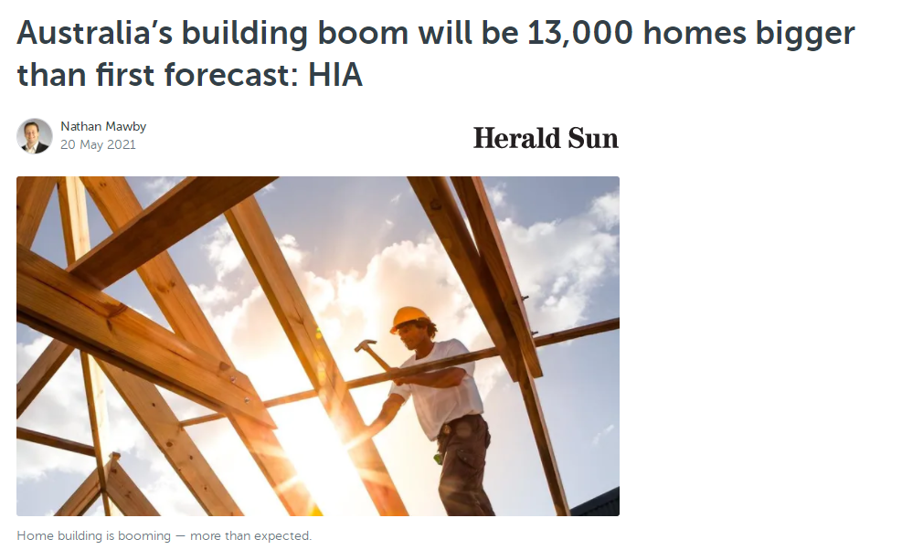 澳洲2021年的住房建设规模将超此前预期。住房行业协会(HousingIndustryAssociation)预计,今年将有超过14.37万栋新房开工,装修活动也将达到创纪录的水平。Realest