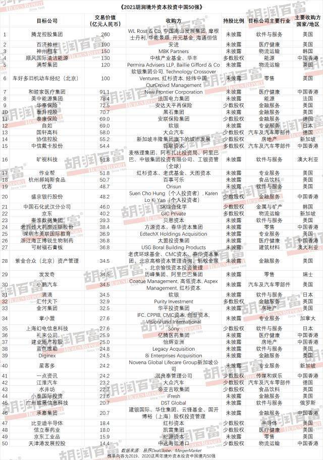 《2021胡润境外资本投资中国50强》