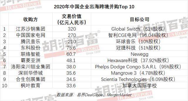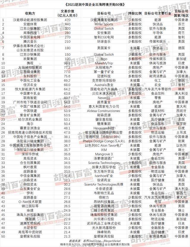 《2021胡润中国企业出海跨境并购50强》