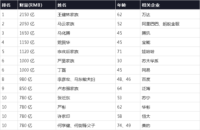胡润百富中国富豪实时榜单前10名。(“胡润百富”网站截图)据《澳洲人报》报道,报告显示,主要受人民币贬值影响,身家150万美元以上的中国富豪有80万人有意投资海外