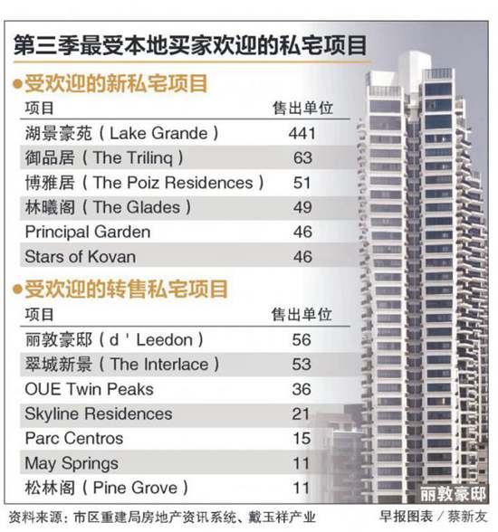 根据戴玉祥产业咨询公司(EdmundTie&Company)最新研究报告,新加坡买家在今年第三季共买了3403个私宅单位,比之前一季增加1.9%。在不同项目里,最受本地买家欢迎