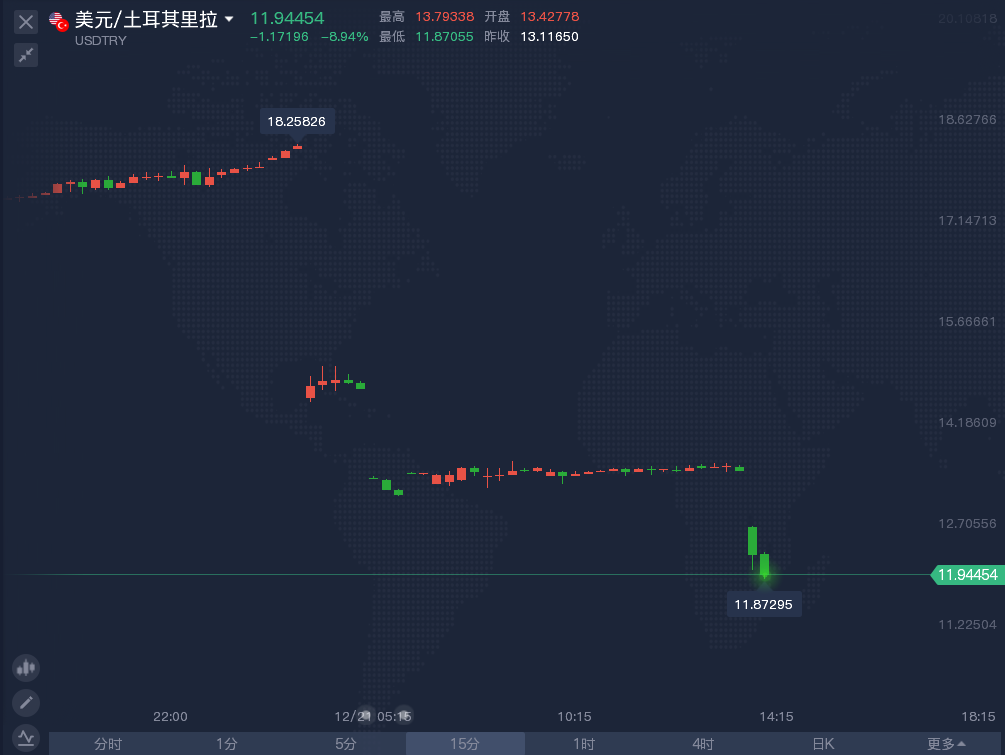 土耳其里拉隔夜上演疯狂过山车。美元兑土耳其里拉一度站上18,续刷历史新高,日内一度涨近12%。随后,土耳其总统埃尔多安宣布新政,里拉随之大幅拉升,美元兑美元持续