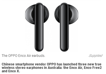 中国智能手机公司OPPO近日在澳洲推出3款新的真正无线立体声耳机,分别为Enco Air、Enco Free2和Enco X。