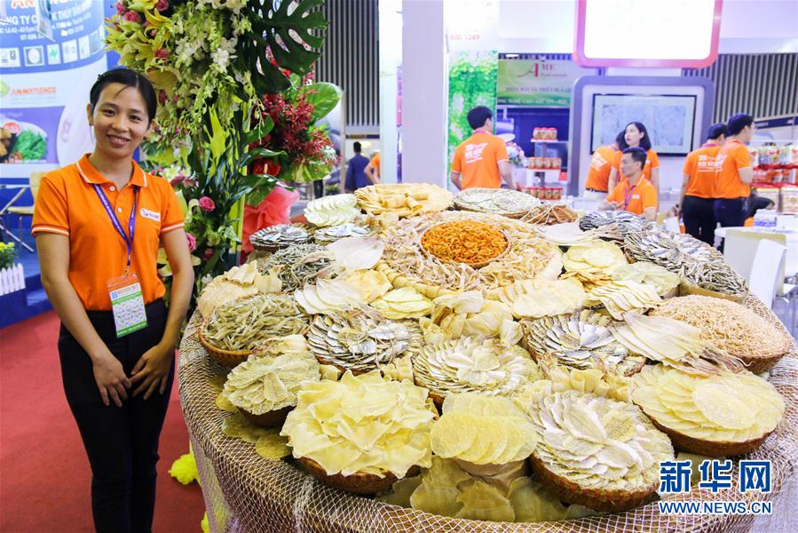 8月29日,在越南胡志明市,一家越南企业的员工介绍产品。 2017年越南水产展在胡志明市西贡会展中心举办。新华社发(黄氏香摄)