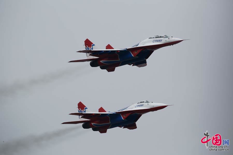 据了解,“勇士”“雨燕”两支飞行表演队分别驾驶重型苏-27和中型米格-29战机。两型飞机在重量、尺寸上都有明显差异,编队表演难度非常大,但在空中表演的效果独树一帜。据了解,此次表演是两支飞行表演队首次在海外进行联演。