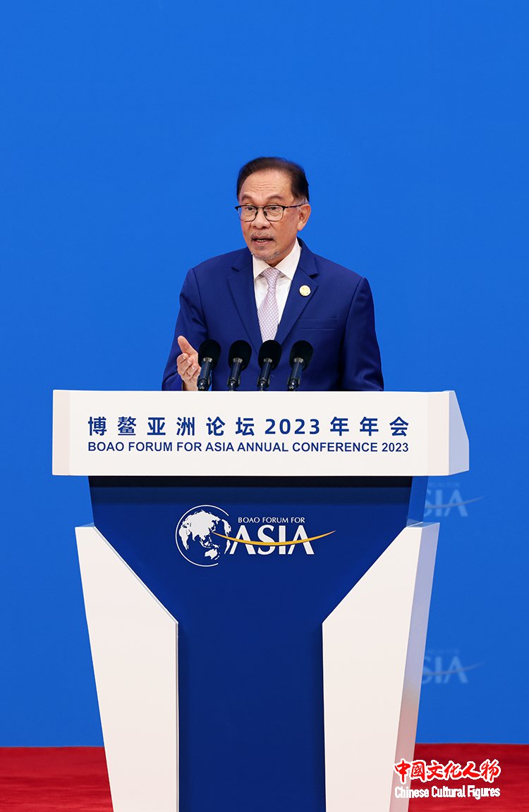 马来西亚总理安瓦尔在致辞时首先感谢中国在新冠疫情期间给予马来西亚的帮助,并强调世界各国秉持团结一致、命运与共价值观的重要性。在他看来,过去几十年的世界发展历程和当下发展趋势都表明,各国有权利选择适合自身的、不同的发展道路。