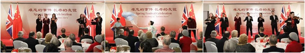 英国当地时间2月24日,中国驻英国使馆在英国格洛斯特郡为“里斯本丸”幸存者家属及相关人士举行2024年新春招待会,追忆“里斯本丸”营救事件,共同庆祝中国元宵佳节。中国驻英国大使郑泽光出席活动并致辞,格洛斯特市市长威廉姆斯、“里斯本丸”幸存者丹尼斯·莫利之女丹妮丝·维尼、长期致力于收集整理“里斯本丸”营救事件资料的英国退役少校费恩祺、浙江省外办副主任陈艳勤、中共舟山市委常委、宣传部部长刘中华以及“里斯本丸”英军战俘和当年参与营救英军战俘的舟山渔民后人代表等约200人参加。