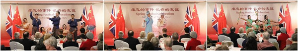 活动现场通过播放视频,向来宾展示了舟山发生的巨大变化和崭新面貌。现场安排了丰富多彩的体验活动,包括中国书架、舟山渔民画、渔绳结展示,以及包饺子、滚汤圆等中国传统文化体验活动。舟山市还专门组织团组,进行了极具特色的文艺演出,引得来宾阵阵赞叹。整场活动气氛热烈,欢声笑语间洋溢着喜庆祥和的年味,在悠扬的《友谊地久天长》乐曲中进入高潮。