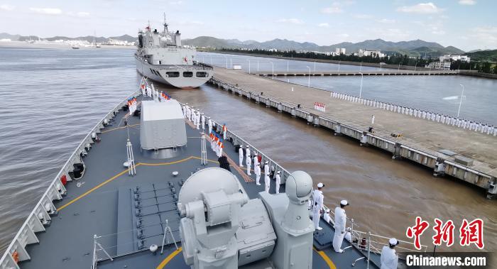 中新网舟山10月14日电(江山)在圆满完成亚丁湾、索马里海域护航任务后,由导弹驱逐舰太原舰、导弹护卫舰荆州舰和综合补给舰巢湖舰组成的海军第35批护航编队,于14日