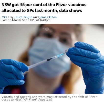 一项对公开数据的分析提出了更多关于新冠疫苗在澳洲分发方式的问题。据悉,新冠疫苗从今年年中开始在澳洲大力推广,其中,新州由于一直处于澳洲在2021年经历的最严重