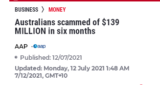 根据澳洲竞争和消费者委员会(AustralianCompetitionandConsumerCommission)的数据,2021年上半年,澳人被诈骗犯骗了1.39亿元。2021年上半年,澳人总共向ACCC的Scamw