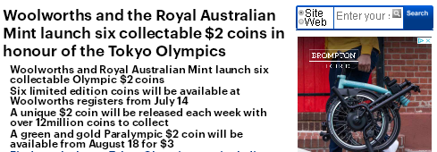 为了迎接马上到来的东京奥运会,Woolworths联手澳洲皇家造币厂(RoyalAustralianMint)13日官宣,将推出6种款式的2元(澳元,下同)纪念币。这些纪念硬币的发行时间如下