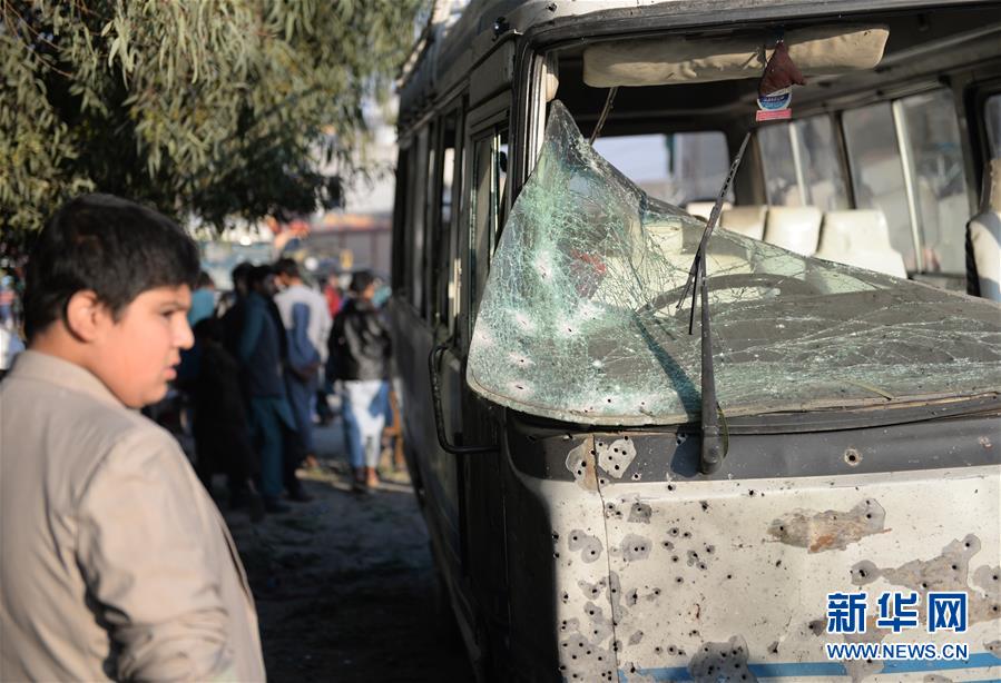 这是11月23日在阿富汗东部楠格哈尔省拍摄的一辆在炸弹袭击中受损的车辆。
