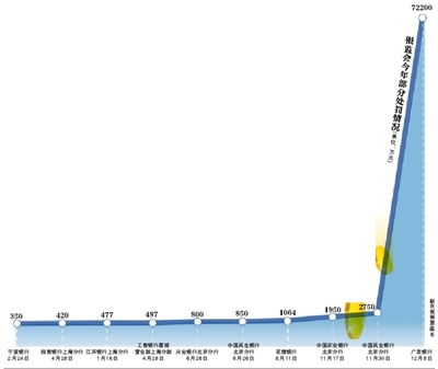 新京报讯 (记者侯润芳)银监会开出史上最大罚单。昨日,银监会通报了“侨兴债”处罚结果,对广发银行总行、惠州分行及其他分支机构的违法违规行为罚没合计7.22亿元。这一金额已超过今年前10月银监会系统对金融机构罚没的6.67亿元总和。