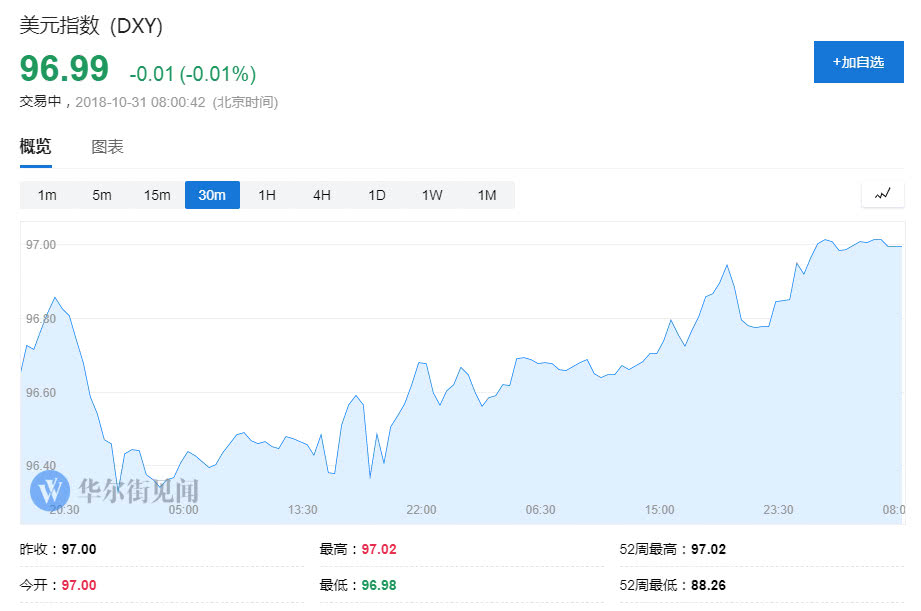 与此同时,美元指数继续大放光彩,上破97关口,创下2017年6月来新高,给黄金走势构成一定的压力。