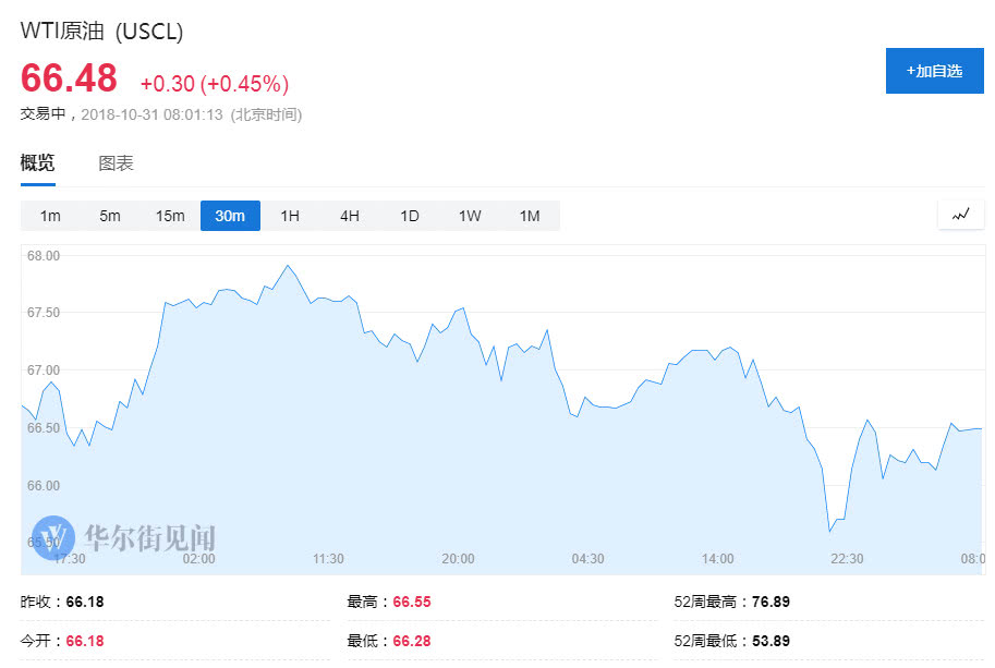 WTI 12月原油期货周二收跌1.28%,报66.18美元/桶。布伦特原油期货收跌1.85%,报75.91美元/桶。