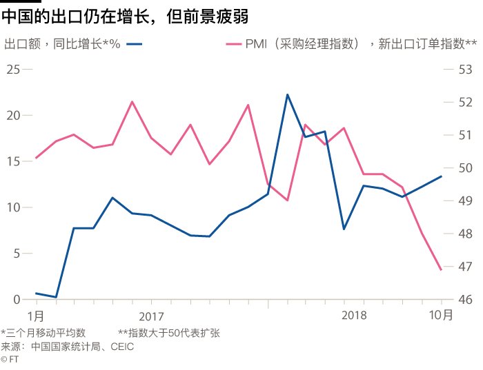 但10月的强劲数字来自提前出货,因为预计明年1月主要加征税率将从10%上升至25%。大多数分析师认为出口最终将因贸易战而放缓。