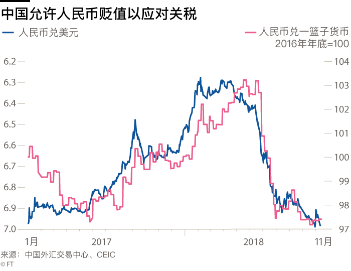 分析师表示目前的轻干涉反映了北京方面对人民币适度贬值感到满意,因为这可以部分抵消关税对中国商品以美元计价的价格的影响。2018年人民币兑美元汇率下跌6.3%,人民币兑贸易加权一篮子货币汇率下跌2.6%。