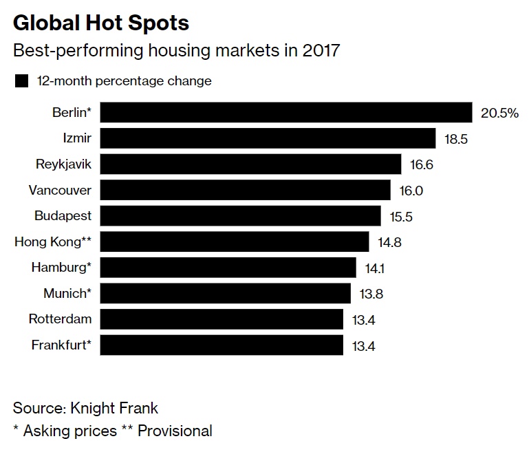 莱坊的数据显示,柏林去年以20.5%的年涨幅,超越香港,成为全球房价涨幅的冠军。
