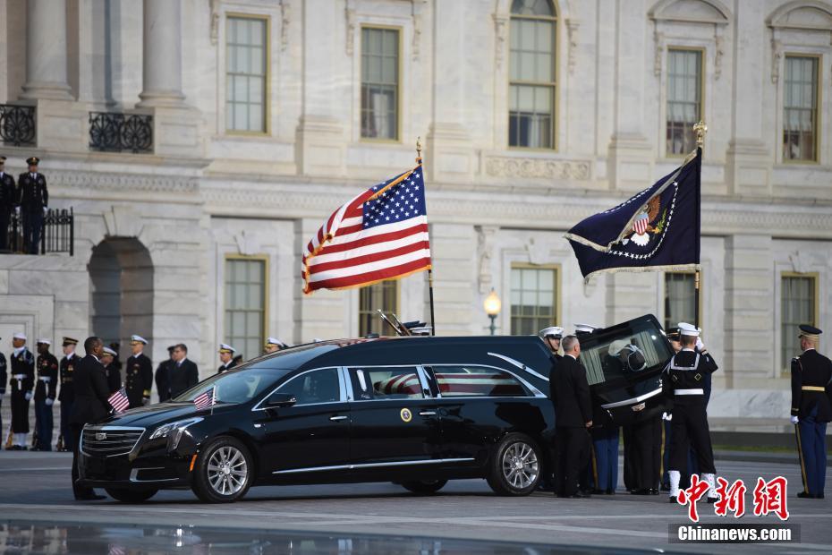 当地时间12月3日傍晚,美国前总统乔治·赫伯特·沃克·布什(老布什)灵柩运抵华盛顿国会山。中新社记者 陈孟统 摄