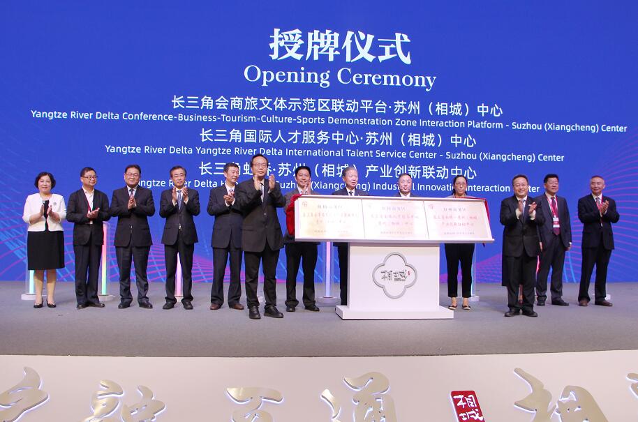 长三角会商旅文体示范区联动平台·苏州(相城)中心、长三角国际人才服务中心·苏州(相城)中心、长三角虹桥·苏州(相城)产业创新联动中心授牌