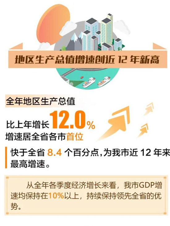 GDP增长12%,增速创近12年来新高,浙江省第一。