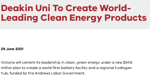 维州高等教育厅长蒂尔尼(Gayle Tierney)和能源、环境及气候变化事务厅长安布罗西奥(Lily D'Ambrosio)29日访问迪肯大学(Deakin University),宣布价值3490万澳元的清洁能源计划。根据计划,维州将启动世界首个电池研究中心和氢能中心,从而巩固在清洁能源领域的领先地位。