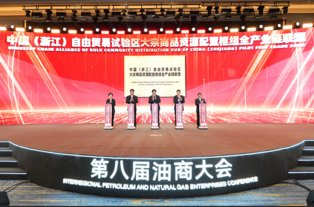 当前,舟山正全力建设大宗商品资源配置枢纽。会上,中国(浙江)自由贸易试验区大宗商品资源配置枢纽全产业链联盟揭牌成立,联盟成员由省内外百家大宗商品领军企业、行业协会及研究机构组成,覆盖储运、加工、贸易、交易和海事服务等大宗商品全产业链,形成资源集聚、优势互补的协同发展格局。