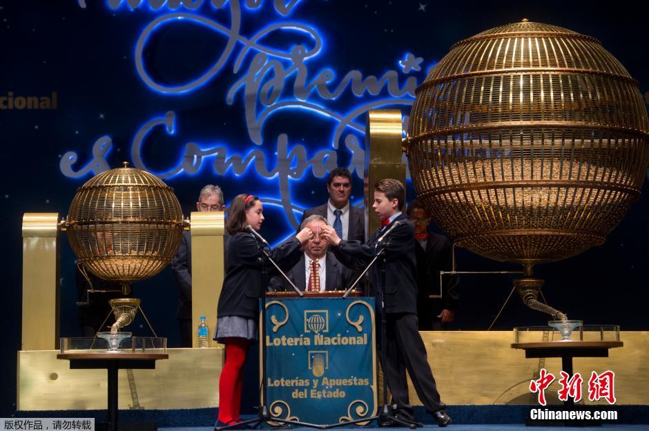 当地时间2015年12月22日,西班牙马德里,西班牙圣诞“大胖子”彩票在当地皇家剧院开奖。今年圣诞“大胖子”彩票总奖金额度达到22.4亿欧元,其中6.4亿将分成每份价值400万欧元的头奖,二等奖奖金为125万欧元,三等奖奖金为50万欧元;四等奖奖金为20万欧元;五等奖奖金为6万欧元。西班牙民众把开奖日当天变成了一个提前庆祝圣诞节节日一样,盛装出席开奖现场,或是亲朋好友欢聚一堂。