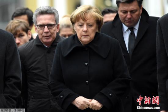 资料图:当地时间2016年12月20日,德国柏林,德国总理默克尔前往发生恐袭的圣诞市场,献花悼念遇难者。