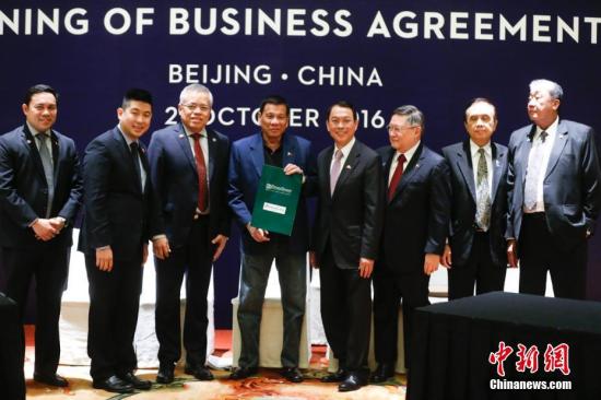 10月21日,菲律宾总统杜特尔特在北京会见中国企业家,会见后,杜特尔特出席并见证中菲企业间签署相关合作协议。菲律宾总统杜特尔特18日对中国进行国事访问。两国21日