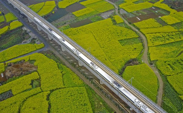 资料图片:一列动车组列车在沪昆高铁贵州安顺段行驶。新华社发参考消息网5月5日报道英国《每日邮报》5月3日评论称,中国已经拥有世界上最大的高速铁路网络,因此中国