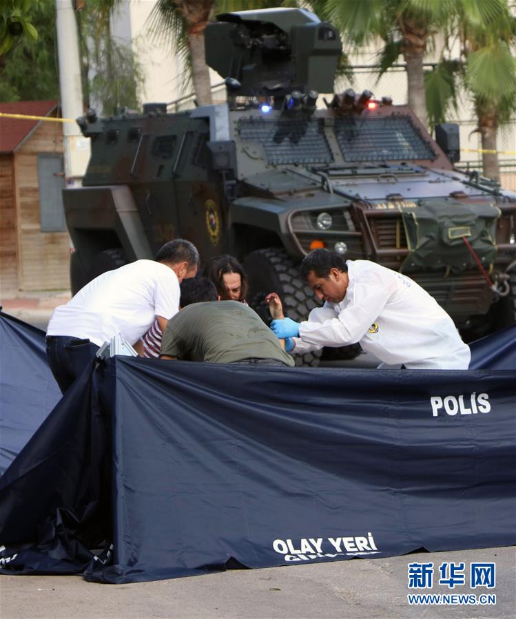9月6日,在土耳其梅尔辛省,警方在袭击现场调查。土耳其警方6日在该国南部梅尔辛省击毙一名企图袭击警察局的自杀式炸弹袭击者。梅尔辛省首席检察官埃尔詹当天对媒体