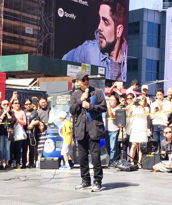9月11日,有着“世界的十字路口”之称的纽约时代广场上,拳风凌厉、风生水起,数十位不同肤色的武术运动员身着飘逸的武术服,打起了太极拳。一招一式的真功夫,配合行云流水的太极拳宣传片,引来来往游客在此驻足拍照。国际武术联合会执行副主席吴廷贵、武术形象大使李连杰以及美国市政厅代表等当地嘉宾到场观看了整场活动。