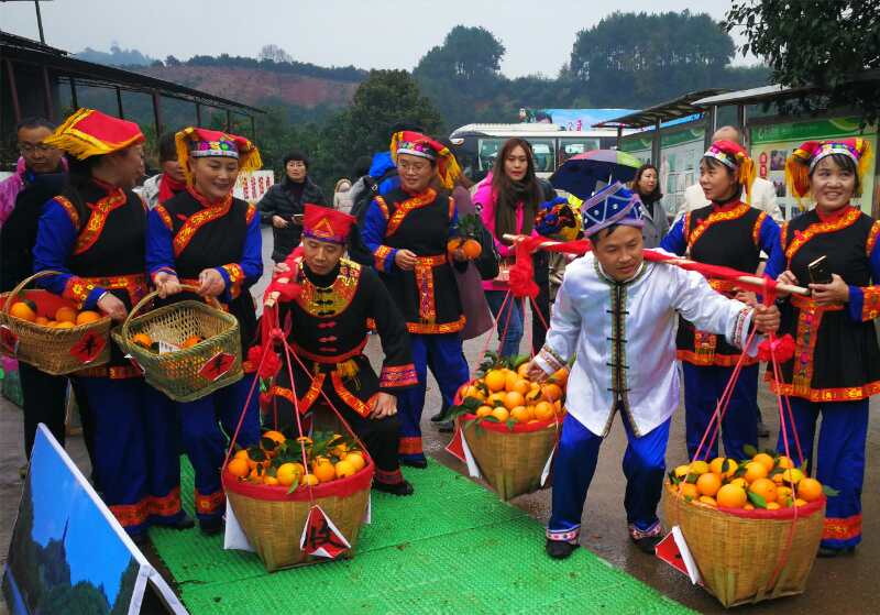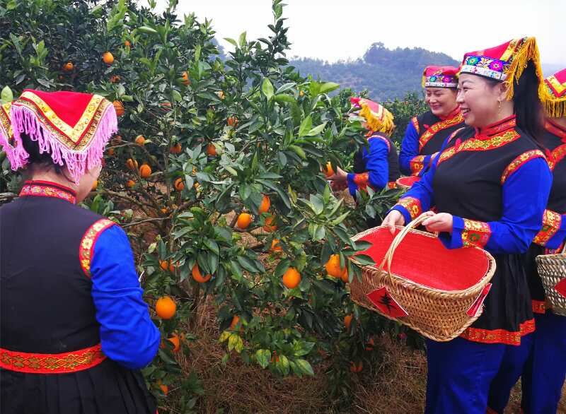 崀山瑶家同胞身着盛装开园采摘崀山脐橙