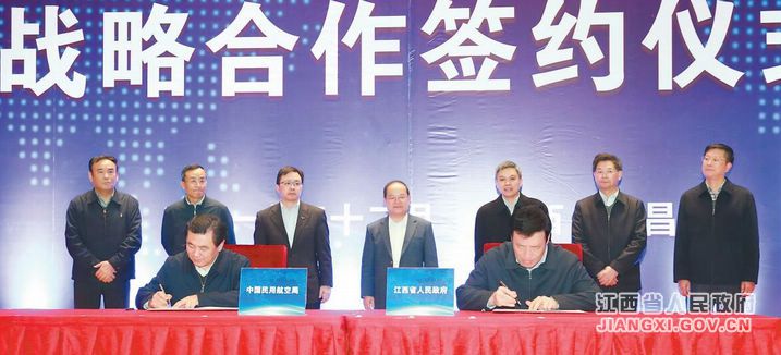 12月11日,省政府与中国民用航空局在南昌签署战略合作框架协议。省委书记鹿心社,省长刘奇会见中国民航局党组书记、局长冯正霖一行并出席签约仪式。