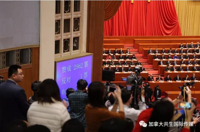 这天下午,万众瞩目的全国人民代表大会第十三届一次会宪法修改议案,以2958票赞成,2票反对,3票弃权的表决结果,毫无悬念地顺利通过。