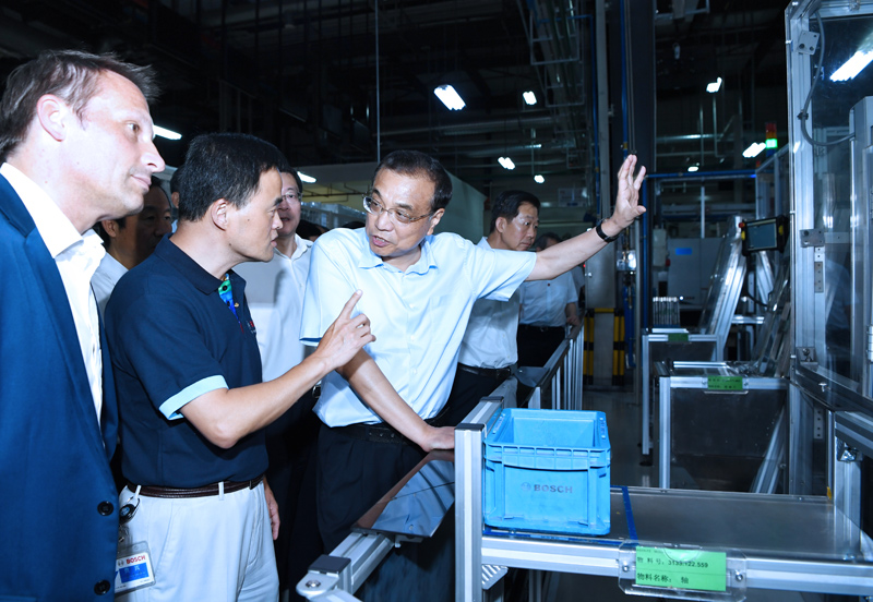 在外商独资的博世长沙公司,李克强详细了解企业生产线智能化升级的情况,希望企业继续加大对中国市场的投资。他说,你们的制造也是中国制造,我们将一视同仁。中国将进一步扩大开放,敞开双臂欢迎外商来华兴业,继续成为外商投资的热土。中国对各国发展先进制造业持开放态度,愿在自动驾驶等先进制造领域加强国际合作。