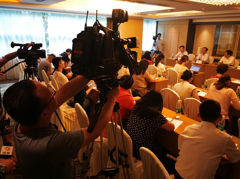张家界旅游招商记者见面会上,人民日报、新华社上海分社、解放日报、江苏新华报业、东方卫视、澎湃新闻湖南广播电视台等30多家媒体记者采访张家界旅游招商情况(王建军摄影)