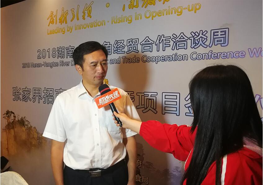 张家界副市长欧阳斌给上海电视台时尚先锋频道介绍张家界旅游(王建军摄影)
