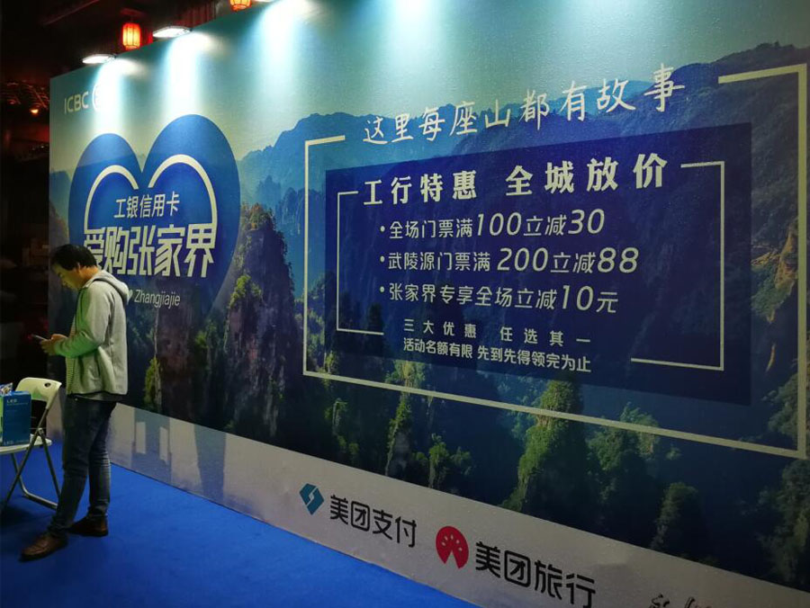 9月18日起,你无论购买张家界武陵源核心景区门票,还是黄龙洞、《魅力湘西》、张家界大峡谷玻璃桥等景区的门票,只要使用工银信用卡消费,即可享受立减20-50元不等的优惠,优惠幅度10%-20%不等。9月17日晚,由中国工商银行携手著名旅游城市张家界打造的区域性“爱购”旅游消费新模式正式启动。工银e生活、途牛、京东、美团点评、本来生活等知名互联网平台同时进入,联手打造全球首款“爱购”旅游消费新模式。