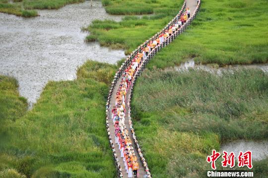 66对“新人”走过走婚桥。 张浪 摄